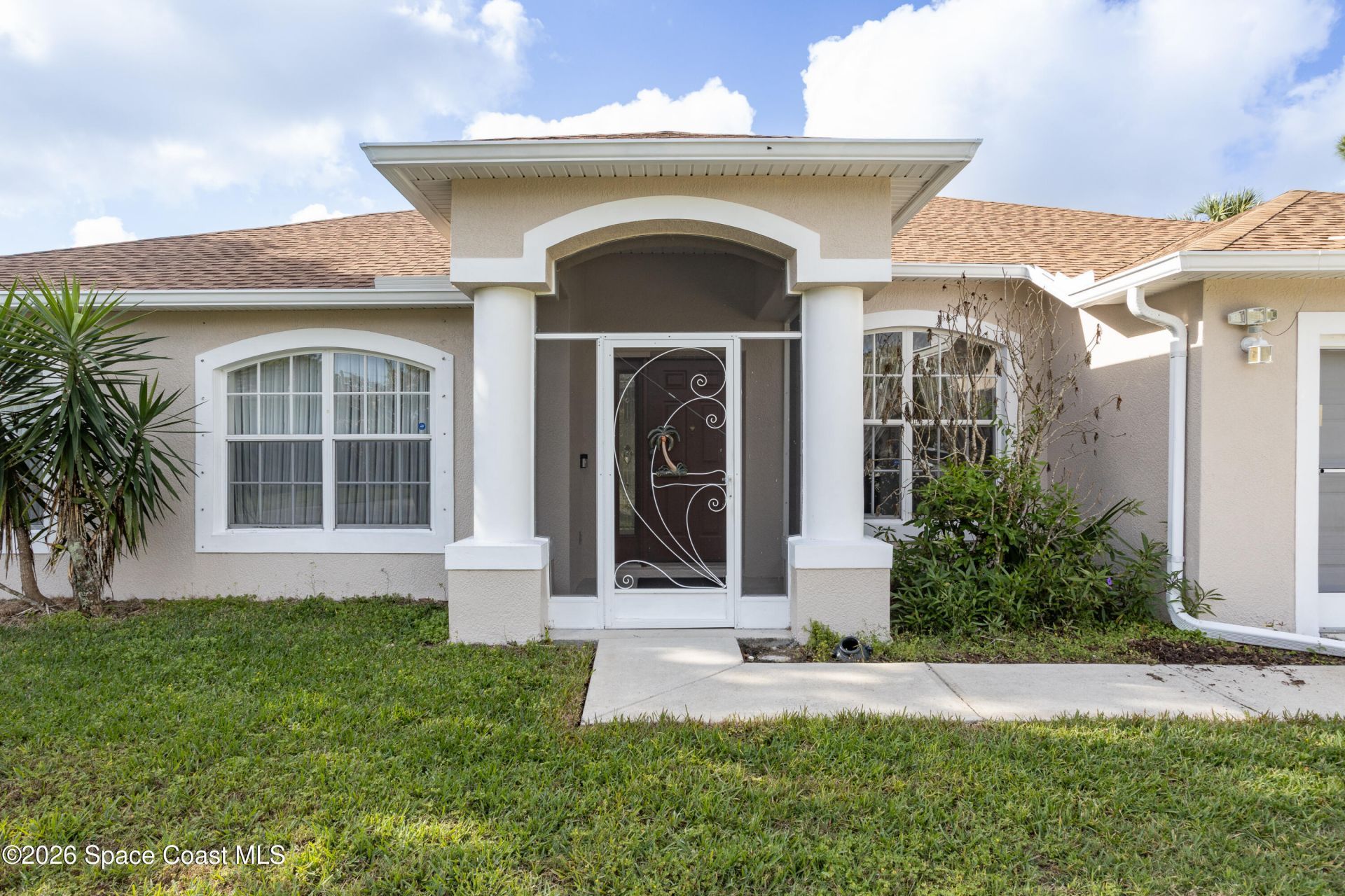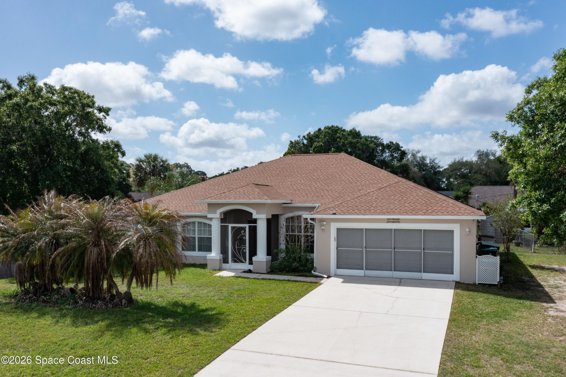 RARE FIND IN PALM BAY! This stunning 4BR, 3 BA w/ Office home sits on a sprawling DOUBLE LOT offering unparalleled space and privacy. The freshly painted interior and exterior home features a massive primary retreat with an oversized walk-in closet. A standout feature is the private 2nd bedroom ensuite with a locking pocket door for an ideal guest wing or multi-generational setup. Hobbyists will love the 2-car garage with a window A/C converted room--perfect for a workshop or studio. Outside, enjoy Florida living at its best with your own private SALT WATER SOLAR HEATED POOL, RV hookup and plenty of room for Toys! Roof 2025, HVAC 2022. Located in SE Palm Bay with easy access to Heritage Pkwy for a quick commute. Residents love this area for its quiet residential feel, proximity to Fred Poppe Regional Park, and the freedom of a larger lot without restrictive HOAs. Whether working from the home office or relaxing by the pool, this home has it all!